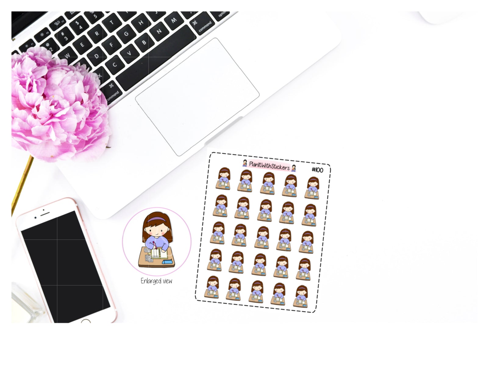 100 - Emma (Kawaii Girl) Planner Girl Planning Desk Working Studying Stickers for , Plum Paper, Recollections, and similar planners