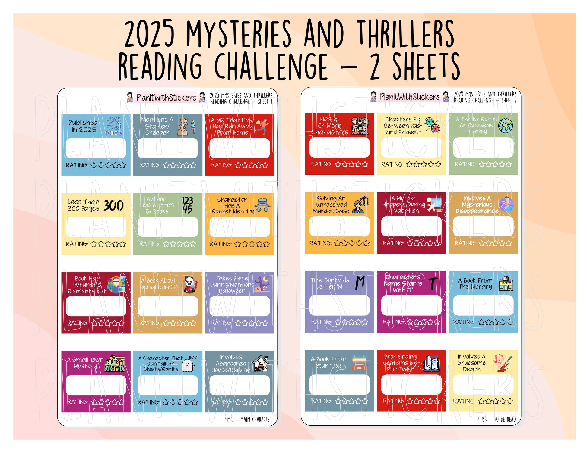 This listing is for 2-5x7 sticker sheets for our 2025 Mysteries and ThrillersReading Challenge - the perfect reading challenge for mystery and murder fans!