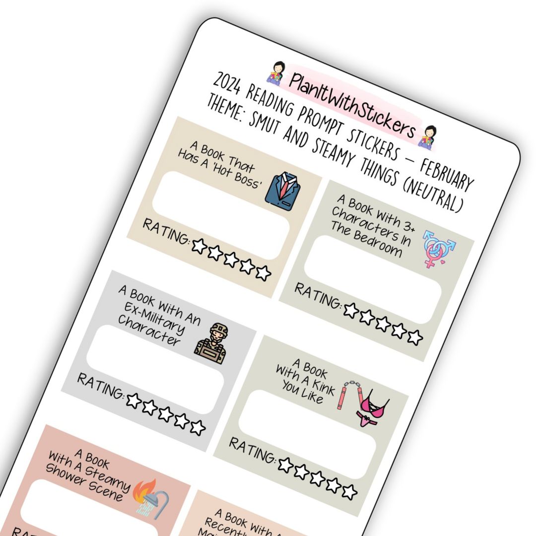Includes 1 sheet (7x3 inches) with 8 reading prompts themed around Smut and Steamy Things. Designed to bring a cheeky, adventurous twist to your reading journey.
