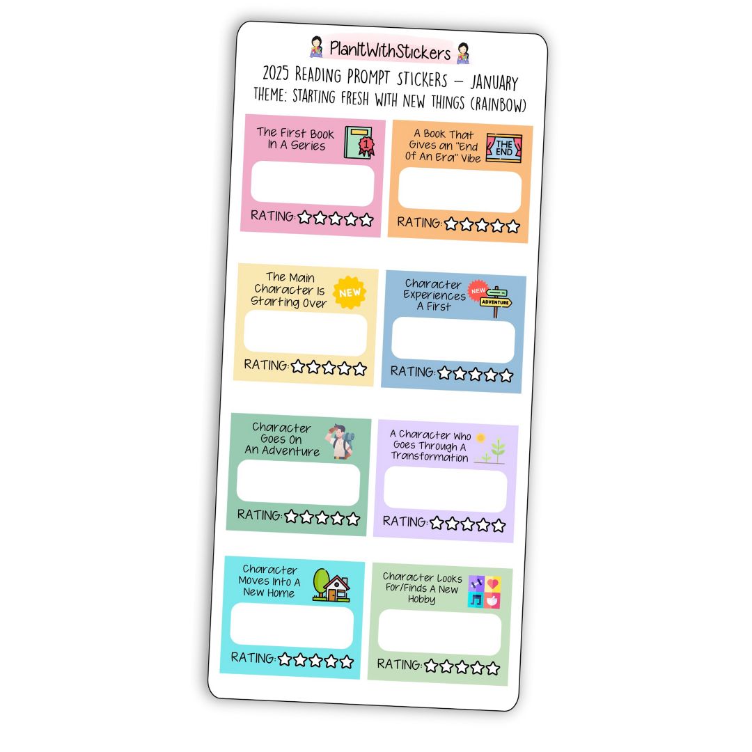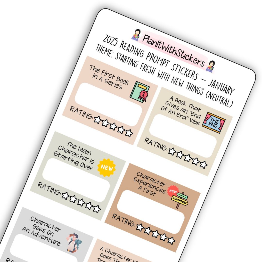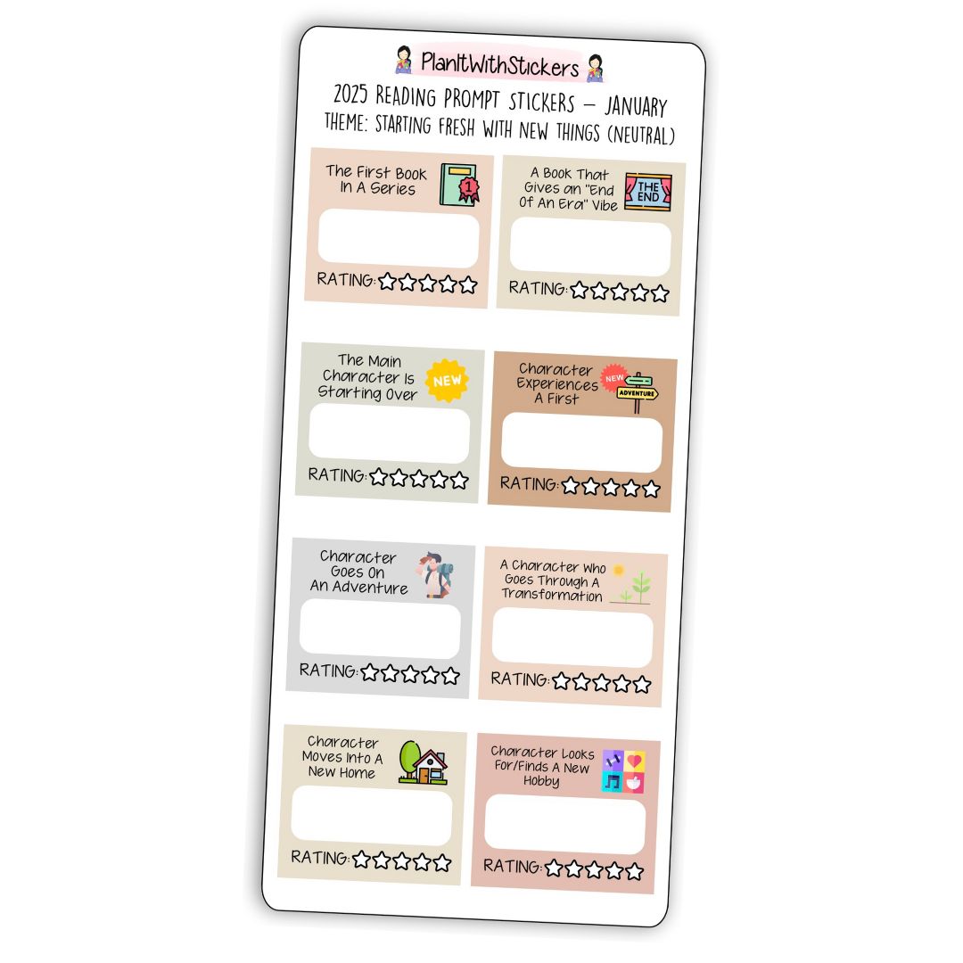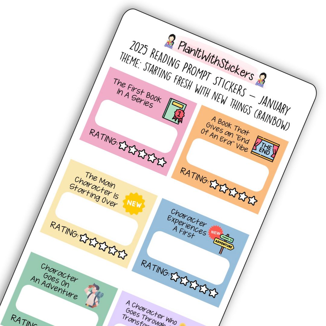 Includes 1 sheet (7x3 inches) with 8 reading prompts themed around Starting Fresh With New Things. Designed to add a playful, purposeful twist to your book journal or planner while helping you kickstart the year strong.