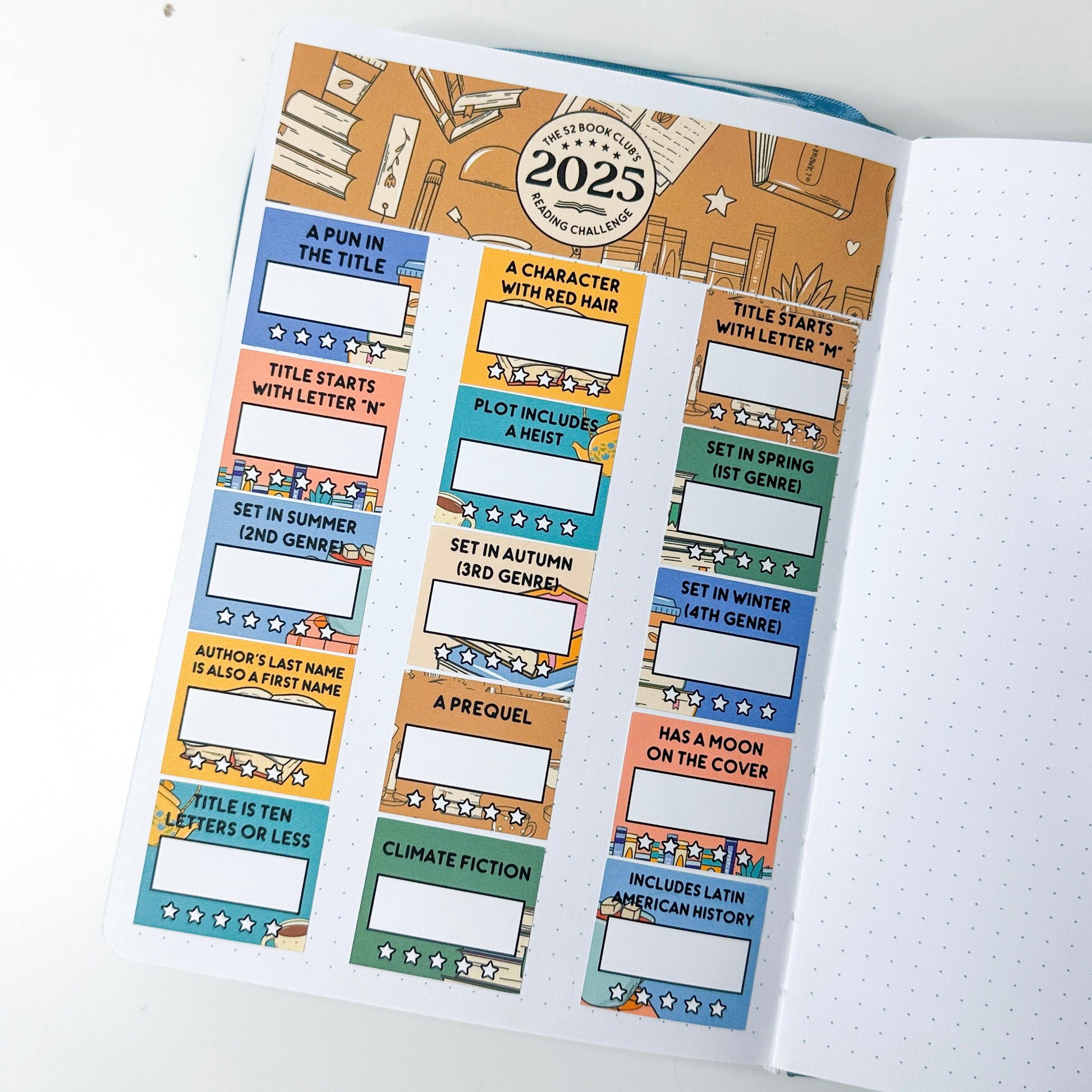 2025 - The 52 Book Club Reading Challenge Prompt Sticker Set for Planners and Journals
