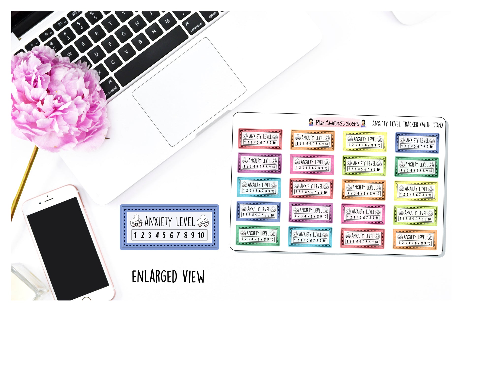 This listing is for one 5x7 sheet of 20 "Anxiety Character Level" tracker stickers. These can be used to track your anxiety levels on a daily basis or a weekly basis.