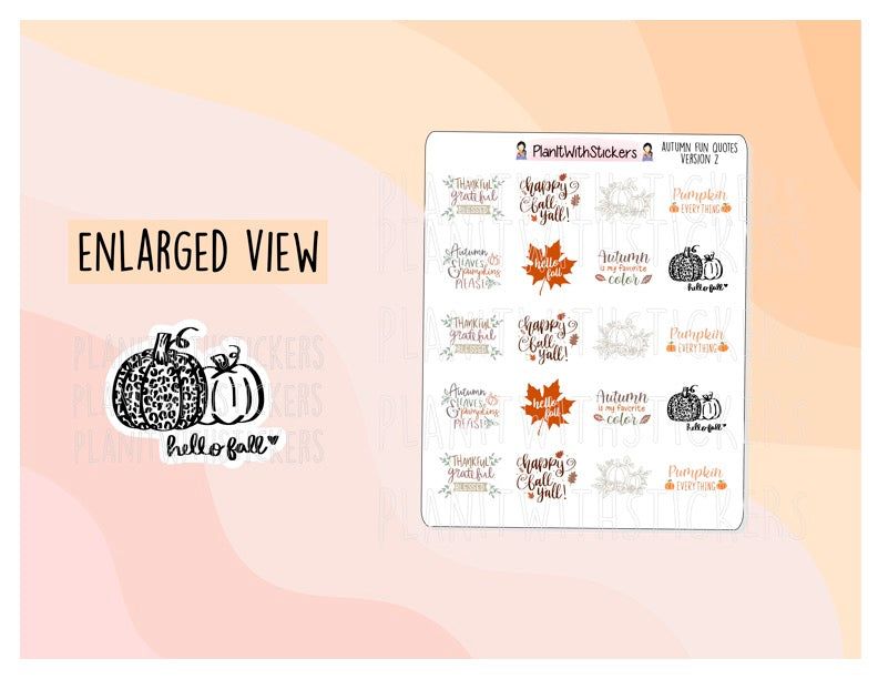 This listing is for one 4x3 sheet of 20 Autumn Fun Quotes Version 2 Stickers.