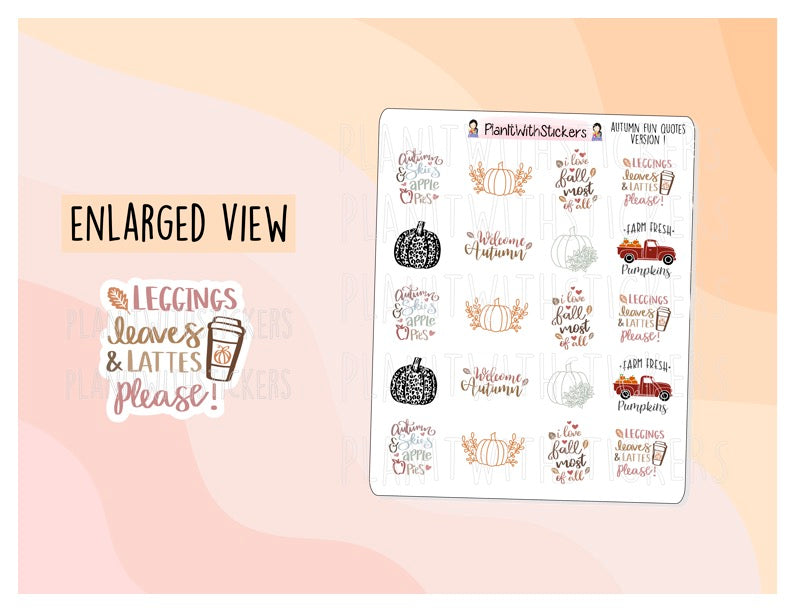 This listing is for one 4x3 sheet of 20 Autumn Fun Quotes Version 1 Stickers.