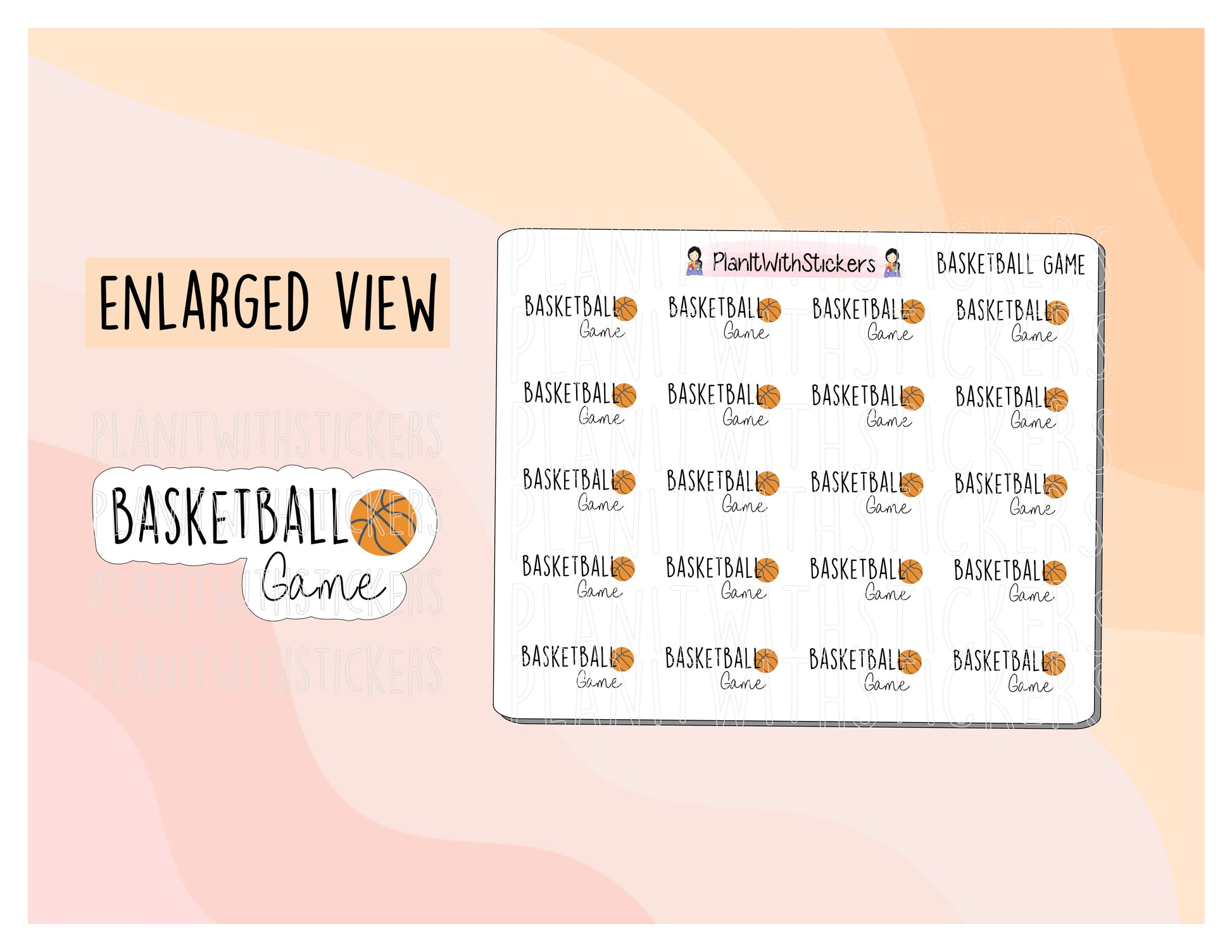 This listing is for one 4x3 sheet of "Basketball Game" stickers. Perfect for using to keep track of game schedules!