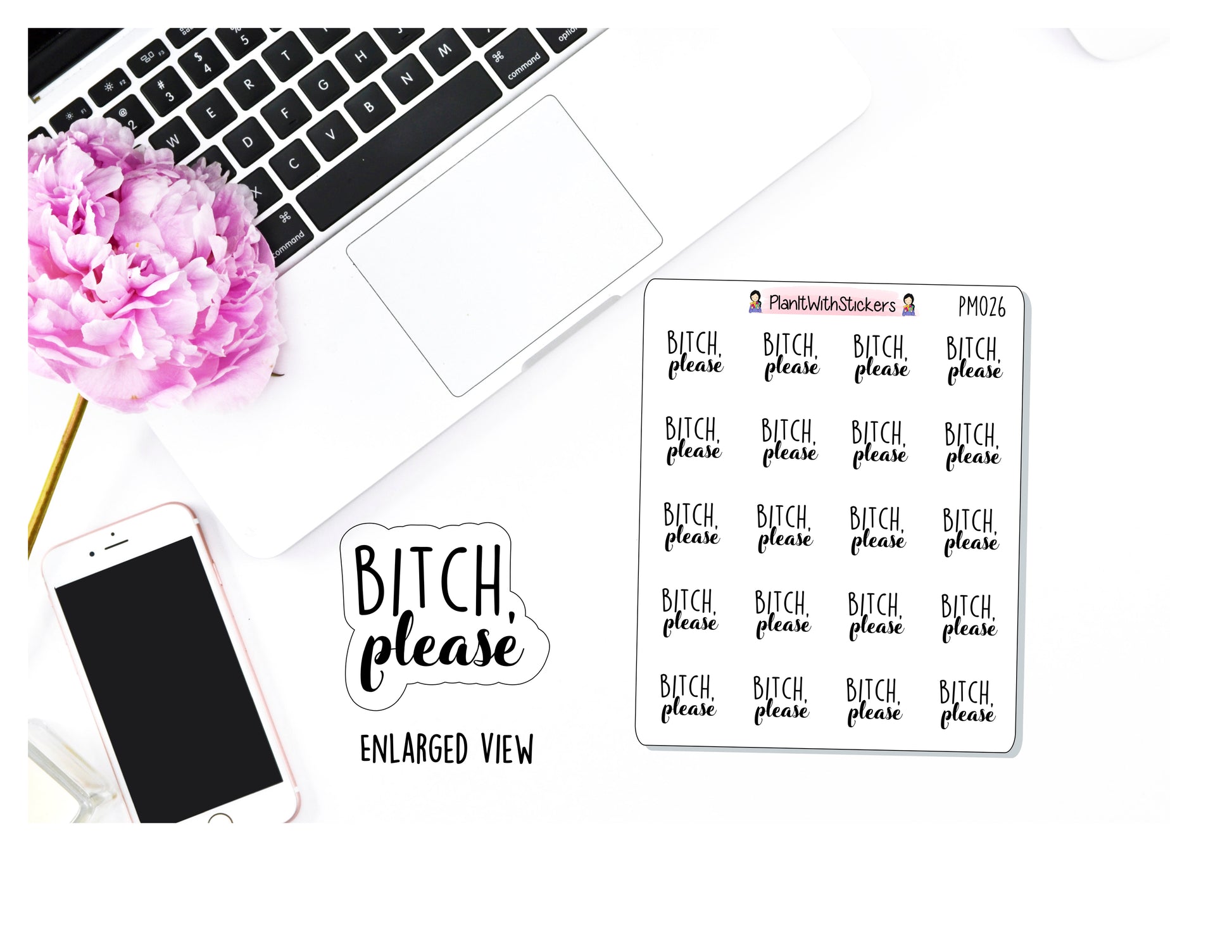 This listing is for one 4x3 sheet of 20 "Bitch, Please" Potty Mouth Stickers.