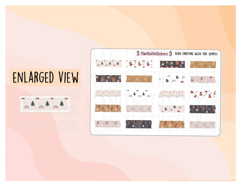 This listing is for one 5x7 sheet of Boho Neutral Christmas Washi Tape Sample Stickers.