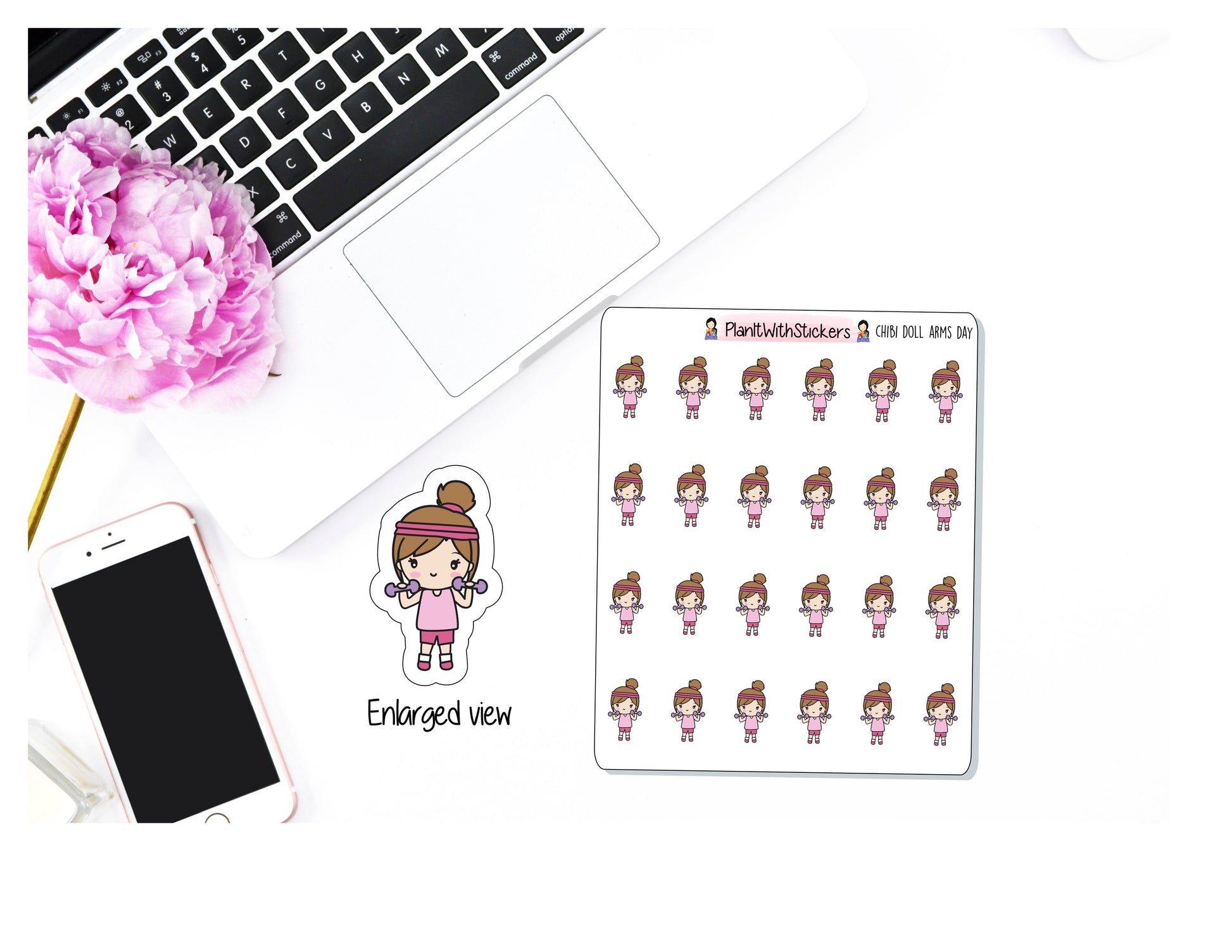Arms Day / Upper Body/ Weight Training Workout Chibi Girl Character Sticker for , Plum Paper, Recollections, and similar planners