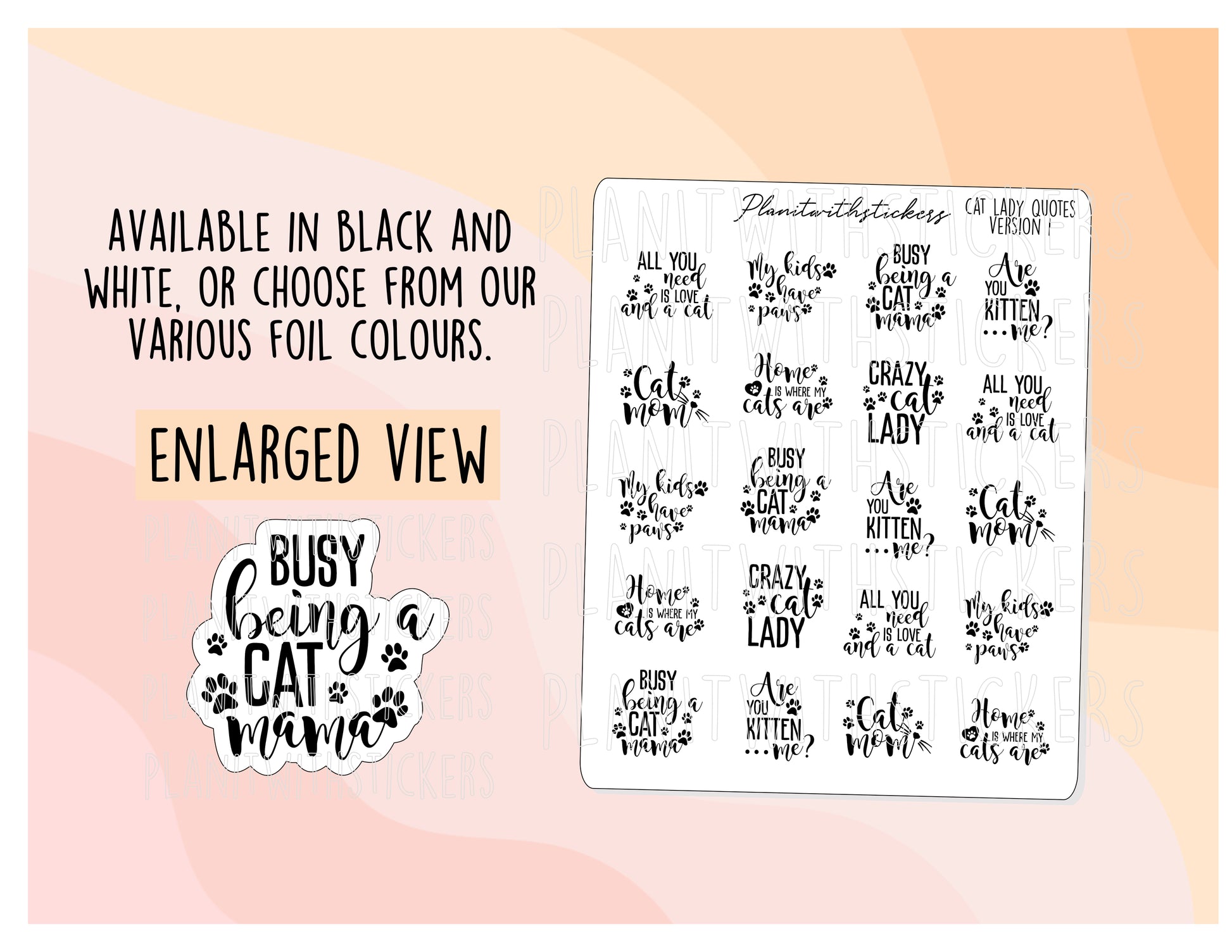 This listing is for one 4x3 sheet of 20 Cat Lady Quote stickers on Sheet 1 of this collection.