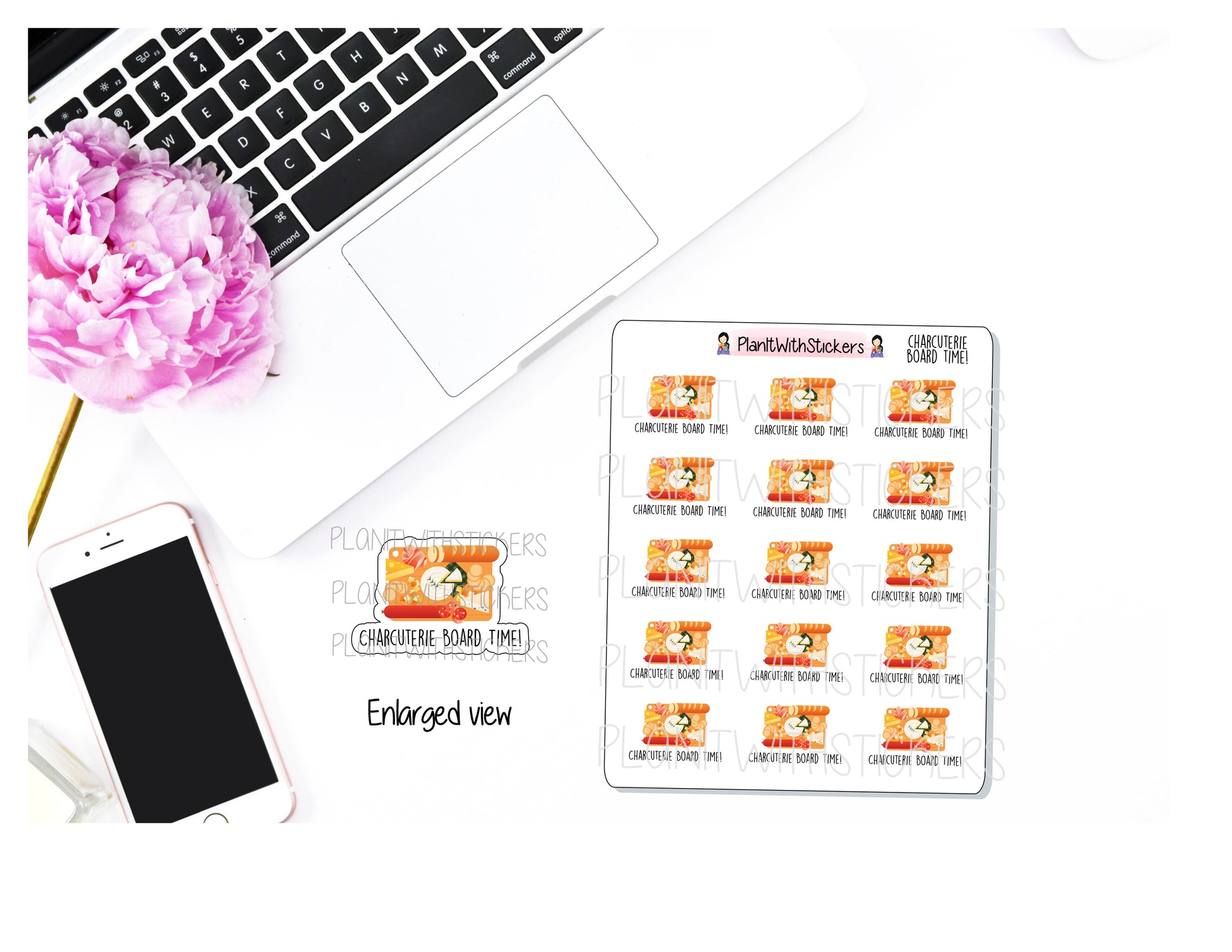 15 Charcuterie Board Icon stickers with text underneath [0.6 inch tall by 1.0 inch wide]