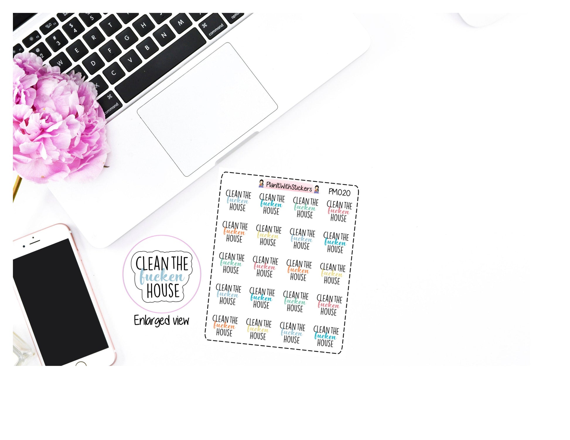 Clean The Fu*ken House Typography Cuss Word Adult Language Potty Mouth Sticker for , Plum Paper, Recollections, and similar planners