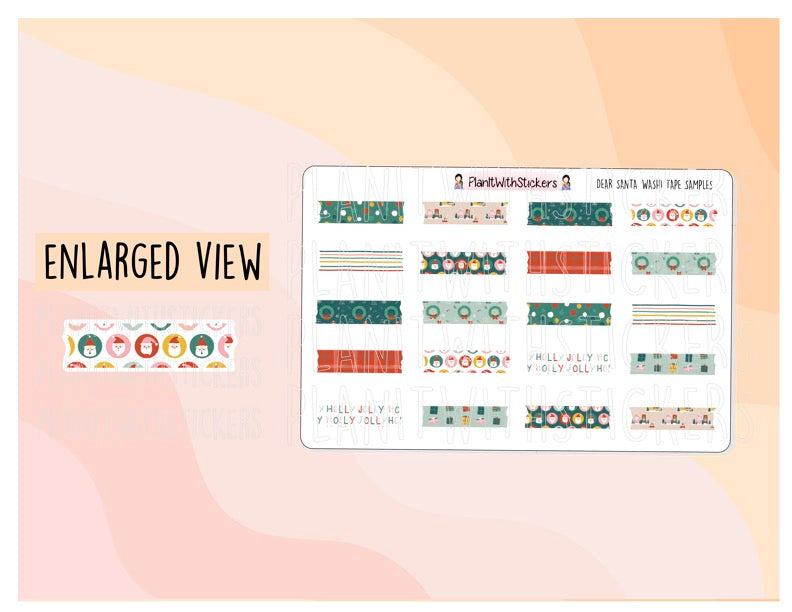 This listing is for one 5x7 sheet of Dear Santa Washi Tape Sample Stickers.