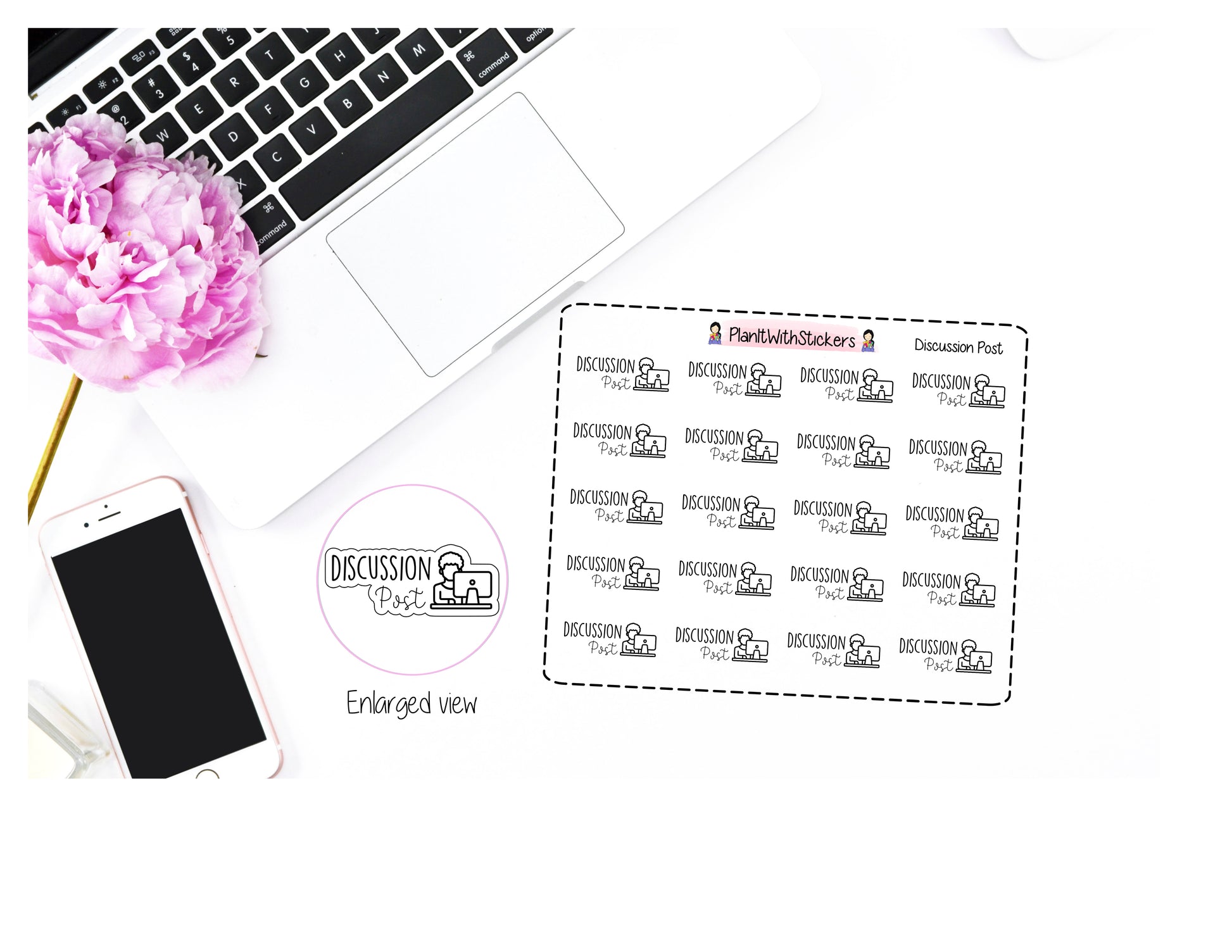 This listing is for one 4x3 sheet of "Discussion Post" stickers - perfect for marking when you need to post on the class forum!