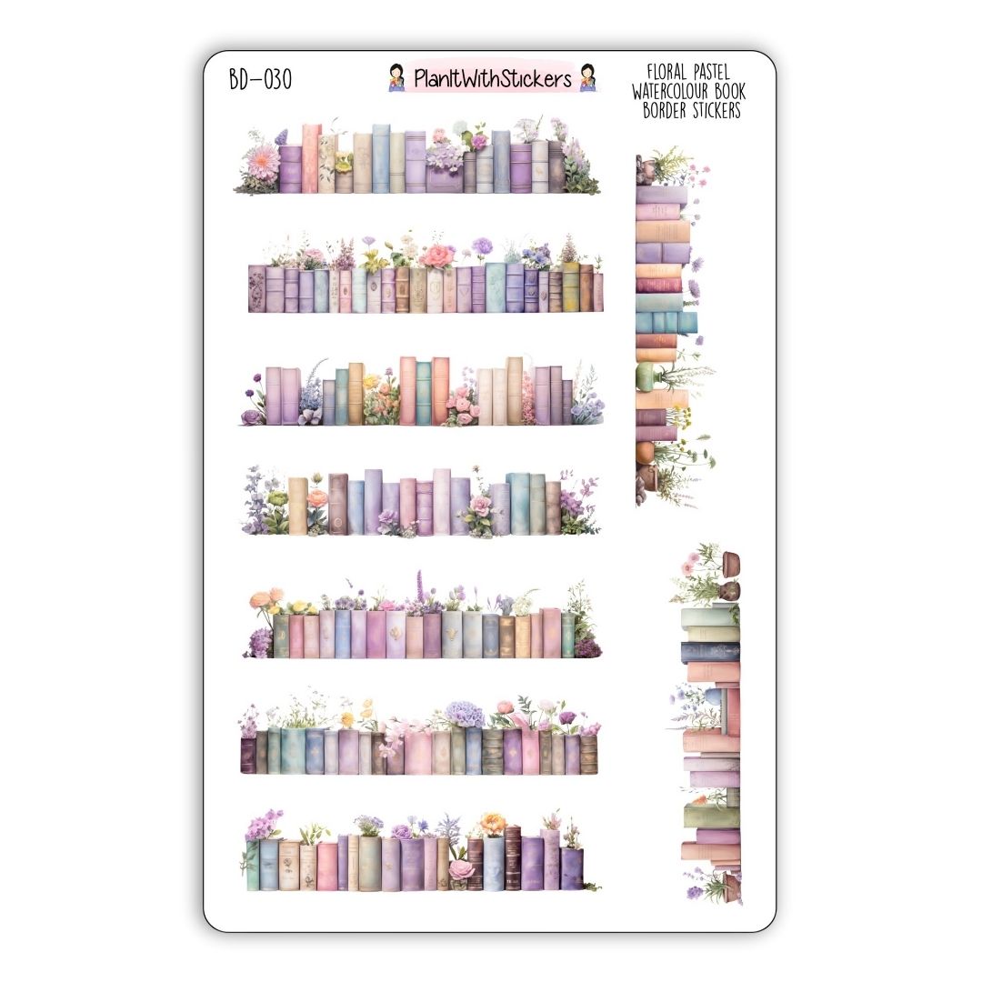 This listing is for a 5x7 sticker sheet of 9 Floral Pastel Watercolour Book Border stickers.