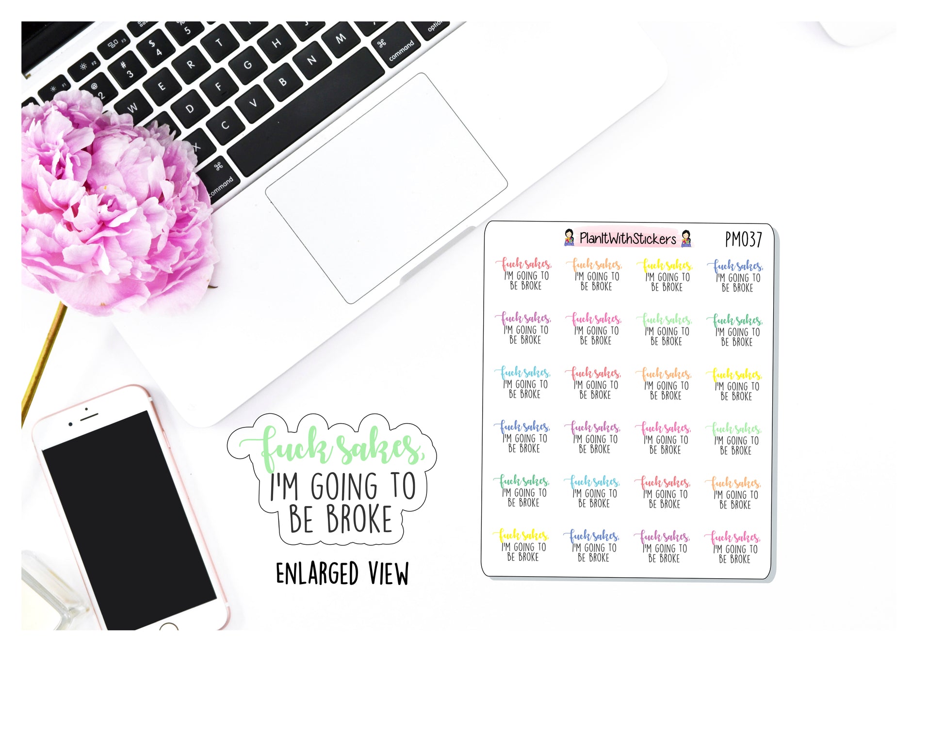 This listing is for one 4x3 sheet of 24 "Fuck Sakes, I'm Going To Be Broke" Potty Mouth Stickers.