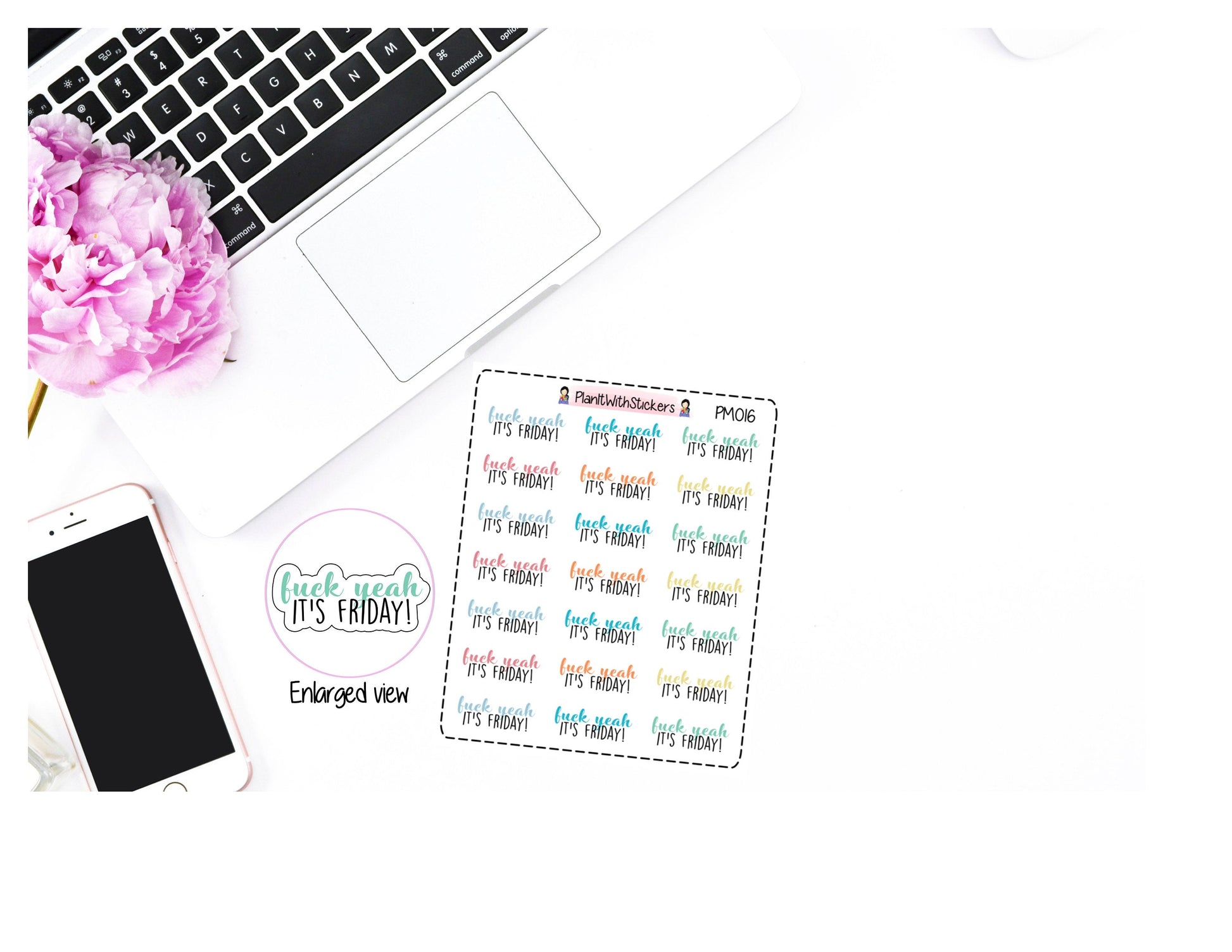 Fu*k Yeah, It's Friday! Typography Cuss Word Adult Language Potty Mouth Sticker for , Plum Paper, Recollections, and similar planners