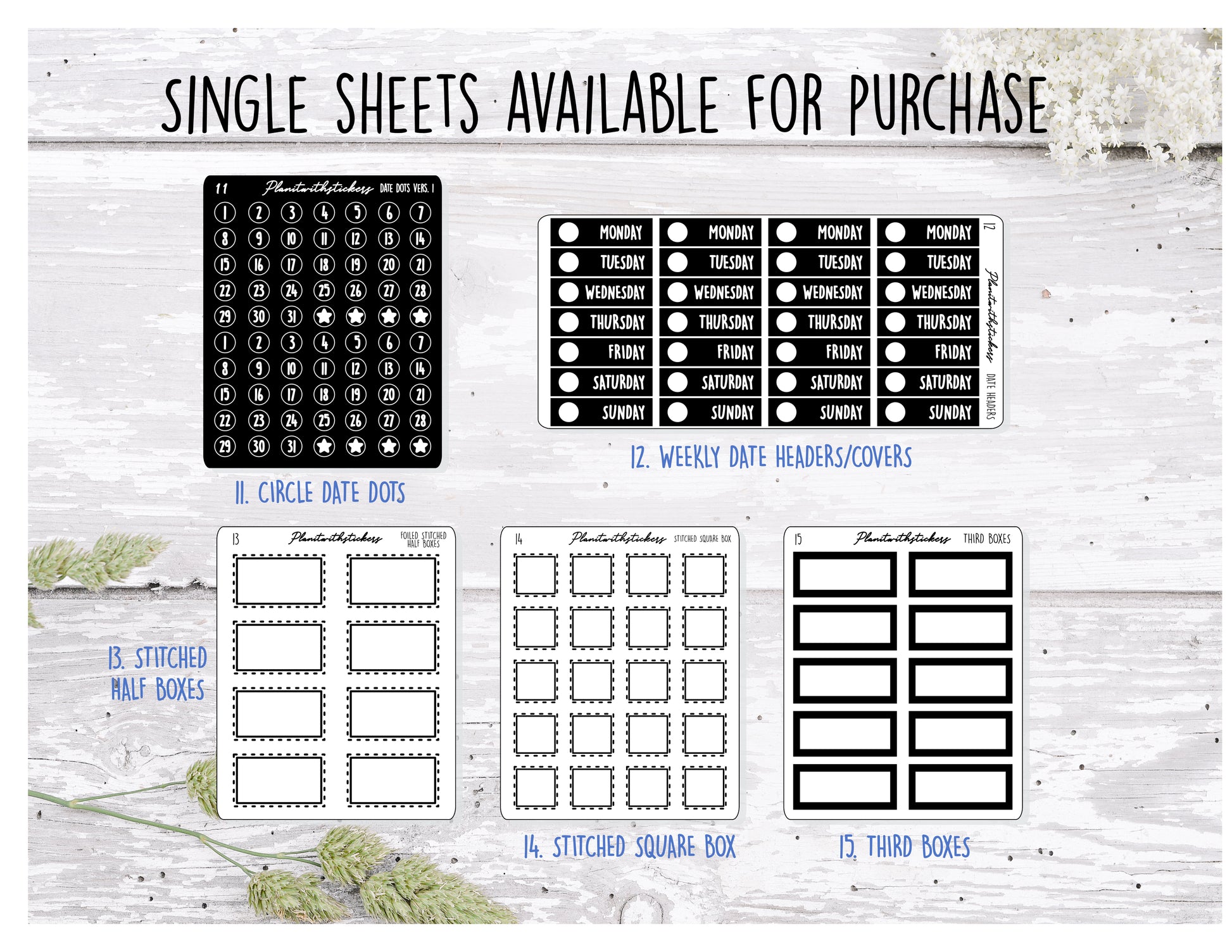 Sheet Size: 4" x 3" (6" x 3" for Weekday Headers/Covers)