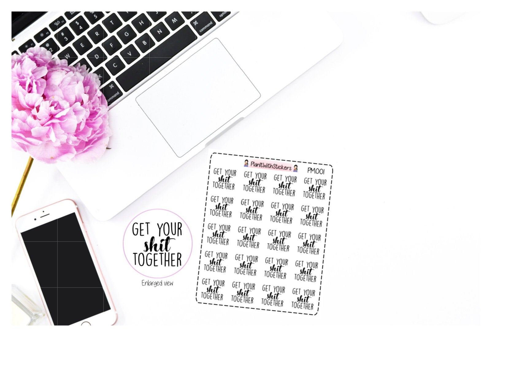Get Your Sh*t Together Typography Cuss Word Adult Language Potty Mouth Sticker for , Plum Paper, Recollections, and similar planners