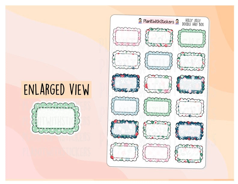 Includes one 5x7 sheet of 16 vibrant Holly Jolly Doodle Half Box stickers for your planner!