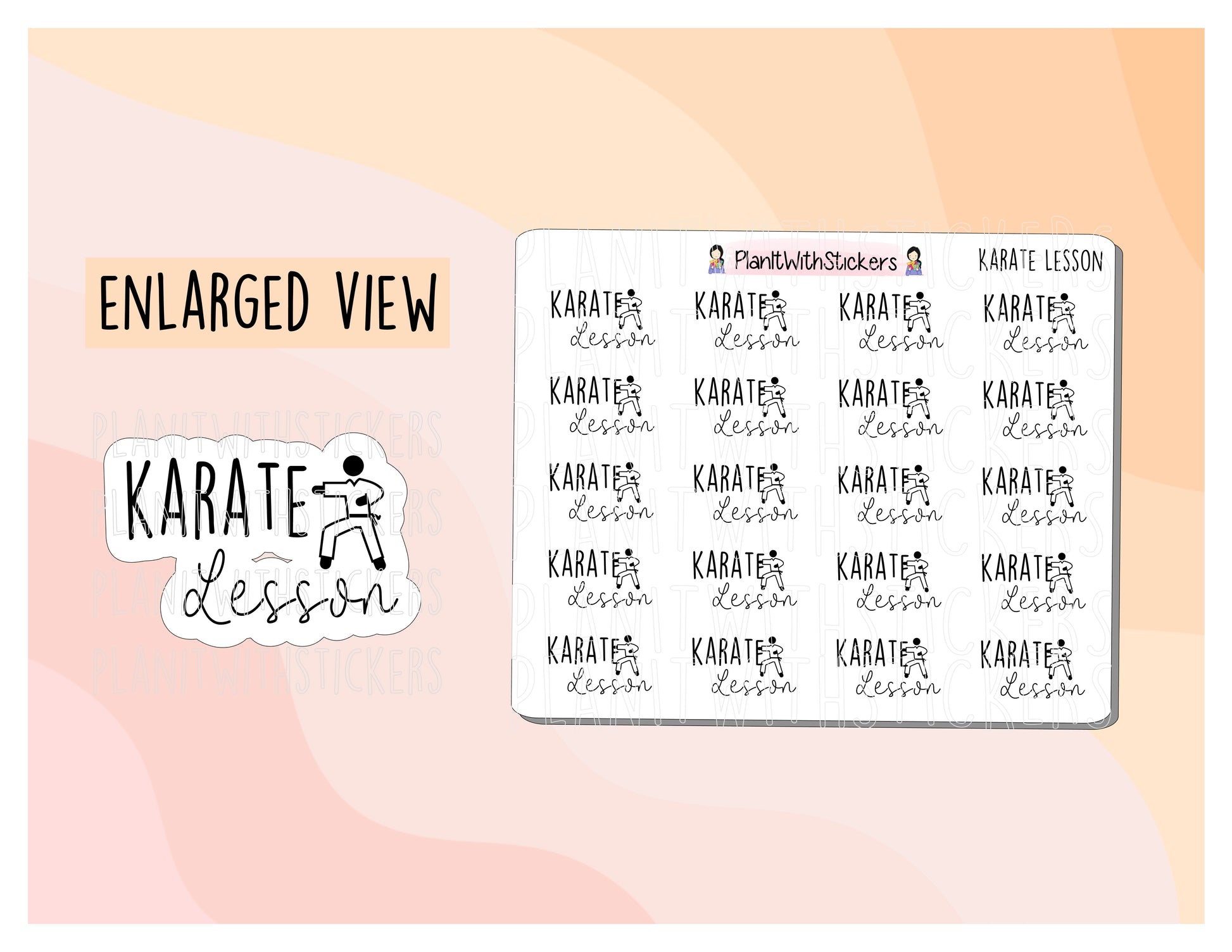 This listing is for one 4x3 sheet of "Karate Lesson" stickers. Perfect for using to keep track of some "HAI-YA!" karate lessons!
