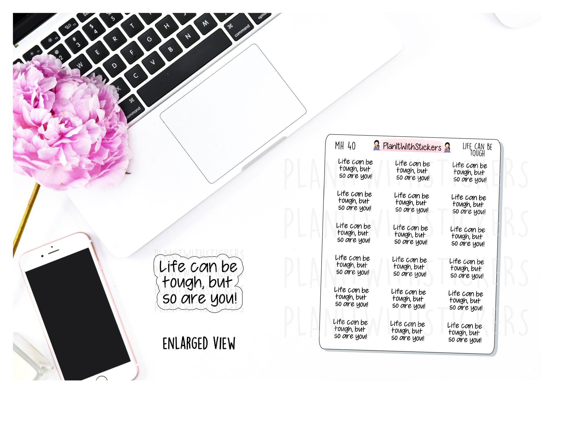 Includes one 4x3 sheet of 18 "Life Can Be Tough But So Are You" stickers.