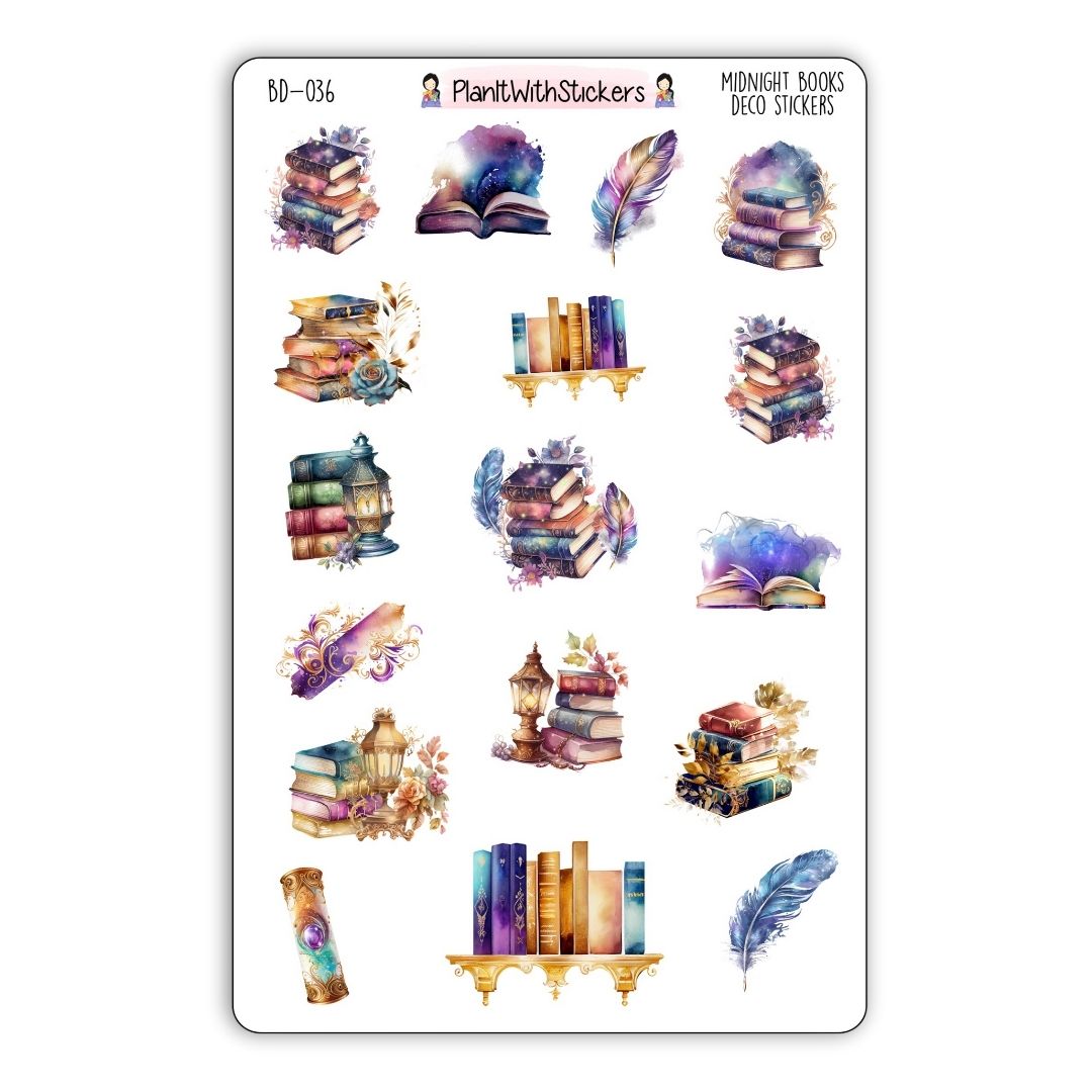 This listing is for a 5x7 sticker sheet of 17 Majestic/Mystical Bookish Things Icon Stickers.