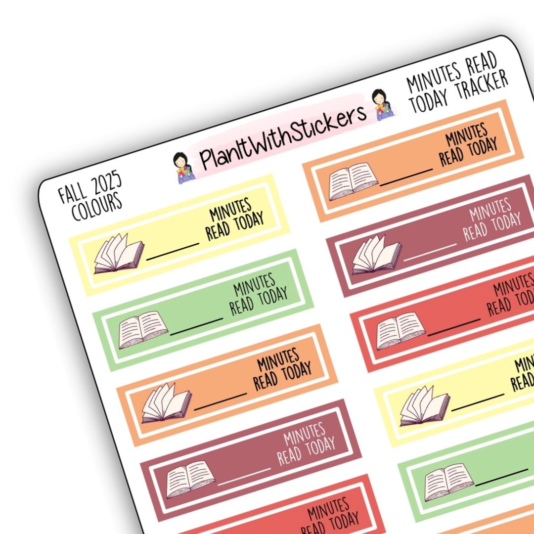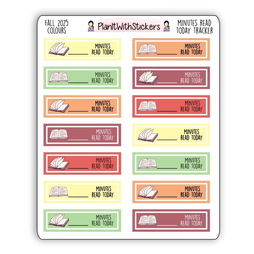 Includes 1 sticker sheet (4x3 inches) with 14 quarter box stickers labeled “Minutes Read.”