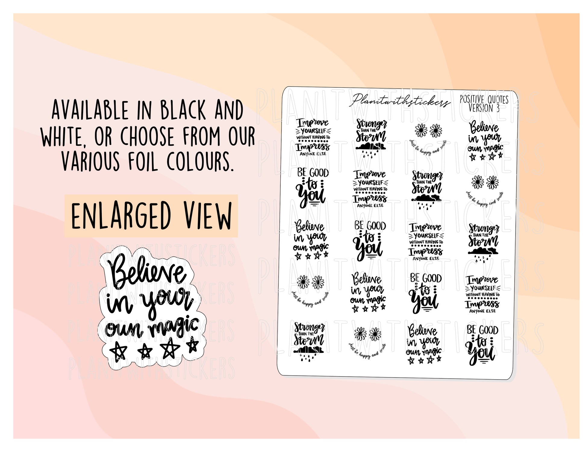 This listing is for one 4x3 sheet of VERSION 3 of our Positive Quotes and Phrases sampler.