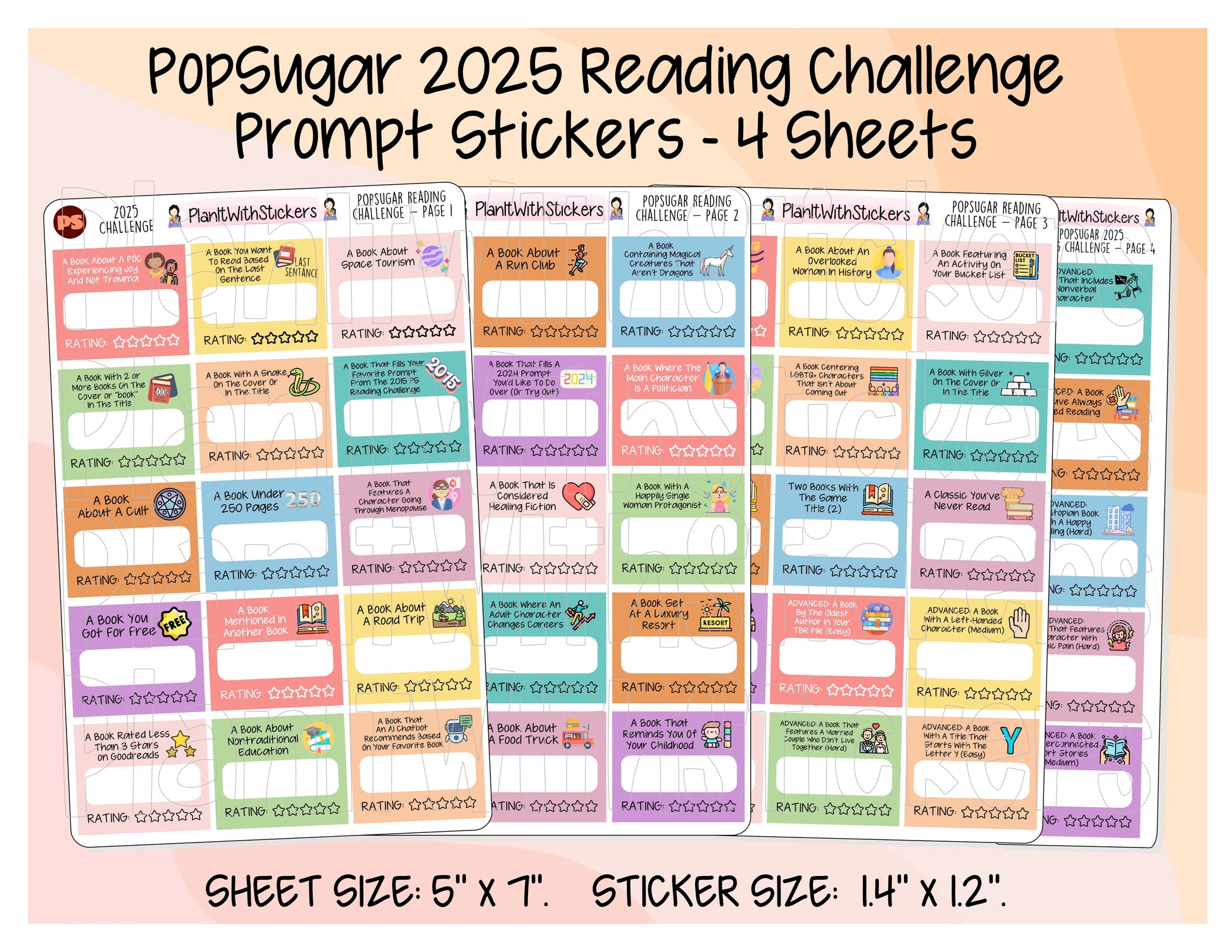 This listing is for The 2025 PopSugar Reading Challenge. Consists of three 5x7 and one 2x7 sticker sheets.