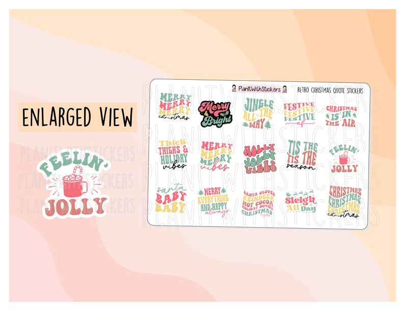 This listing is for one 5x7 sheet of 15 Retro Christmas Quote stickers in a retro colour palette!