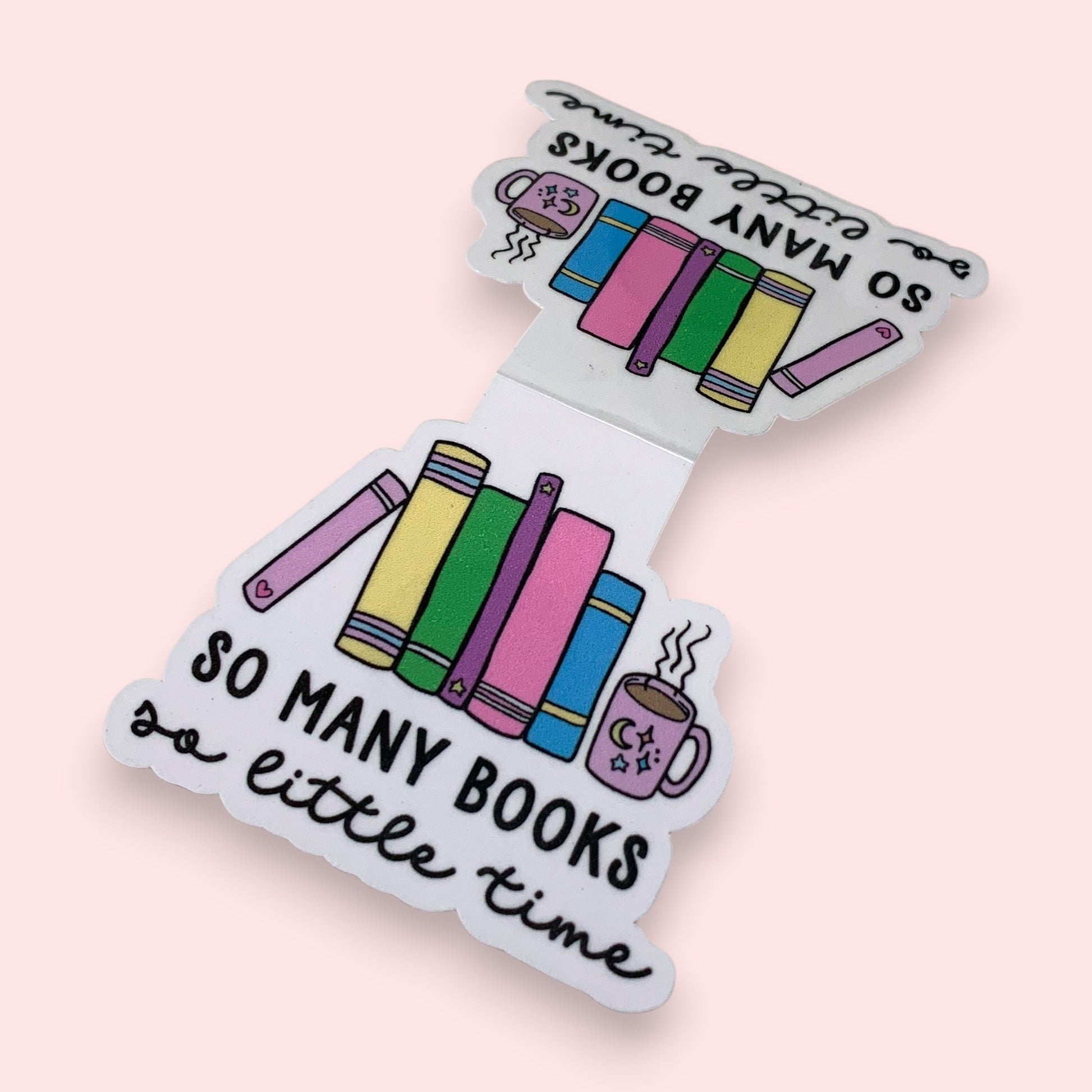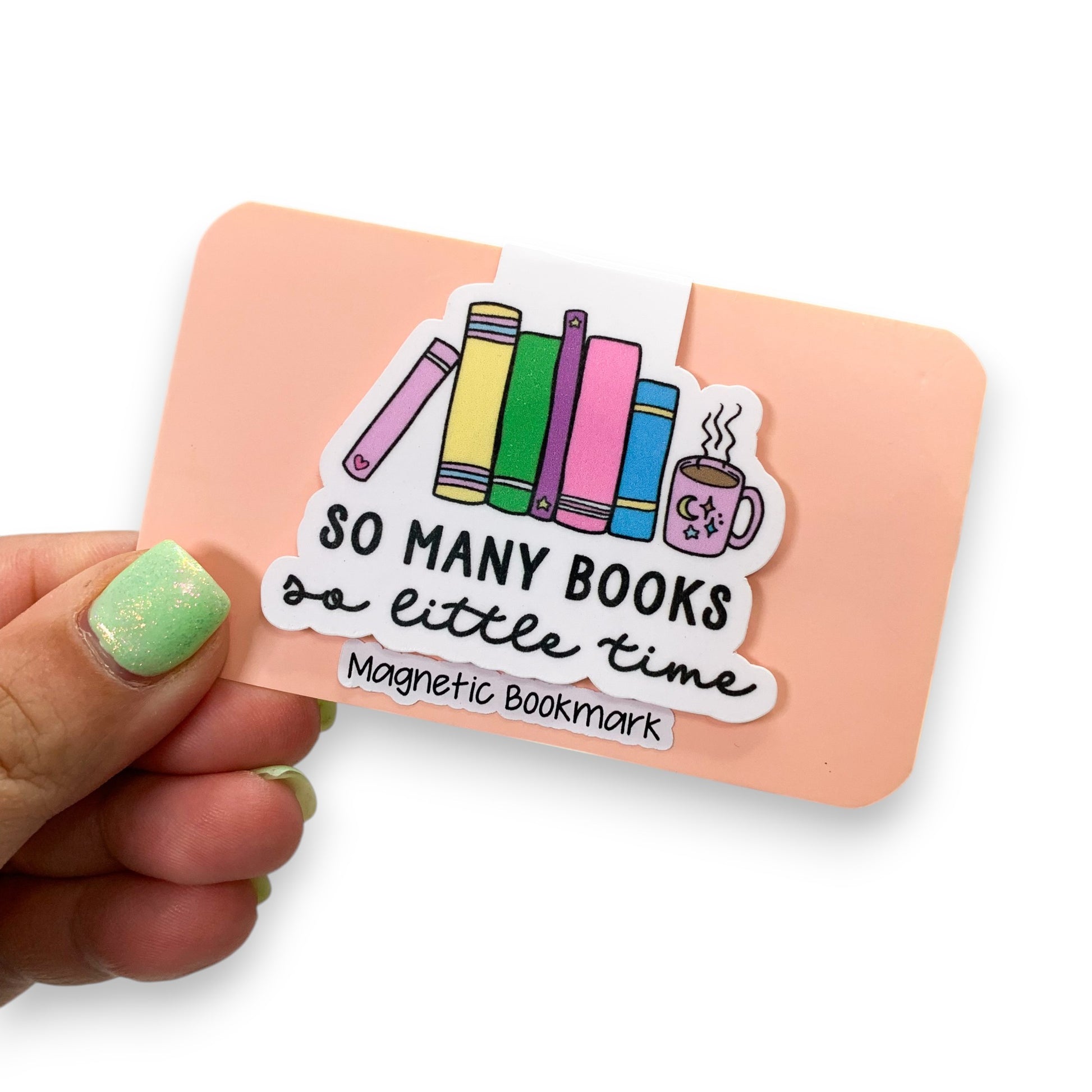 This listing is for ONE (1) magnetic bookmark featuring a bookshelf design with the text "So Many Books, So Little Time".
