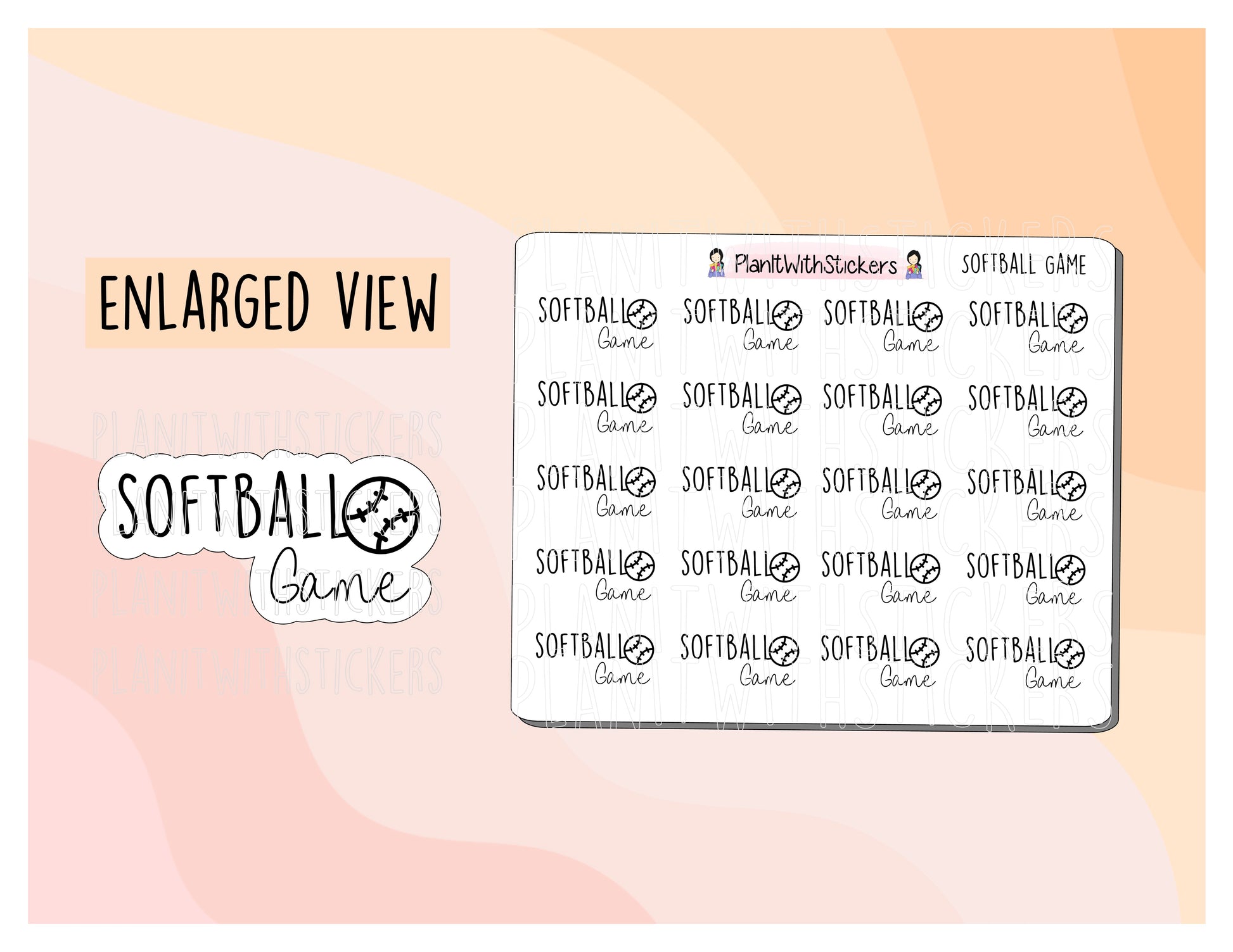 This listing is for one 4x3 sheet of "Softball Game" stickers - perfect to plan ahead or keep track of days when there is a softball game!