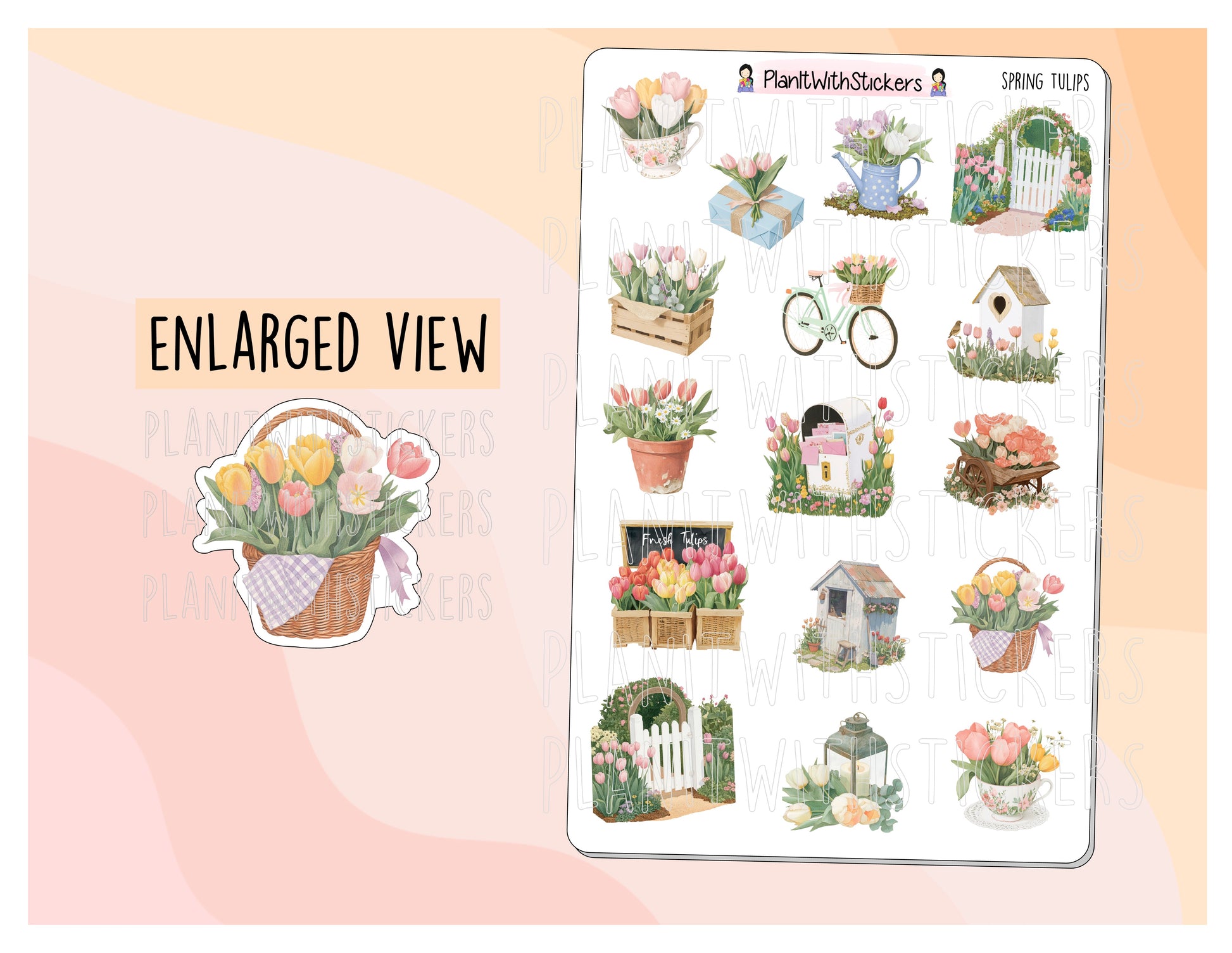 This listing is for a 5x7 sticker sheet of Spring Tulips and Gardening stickers. Perfect for adding beautiful colour and joy to your spring journal/planner spreads!