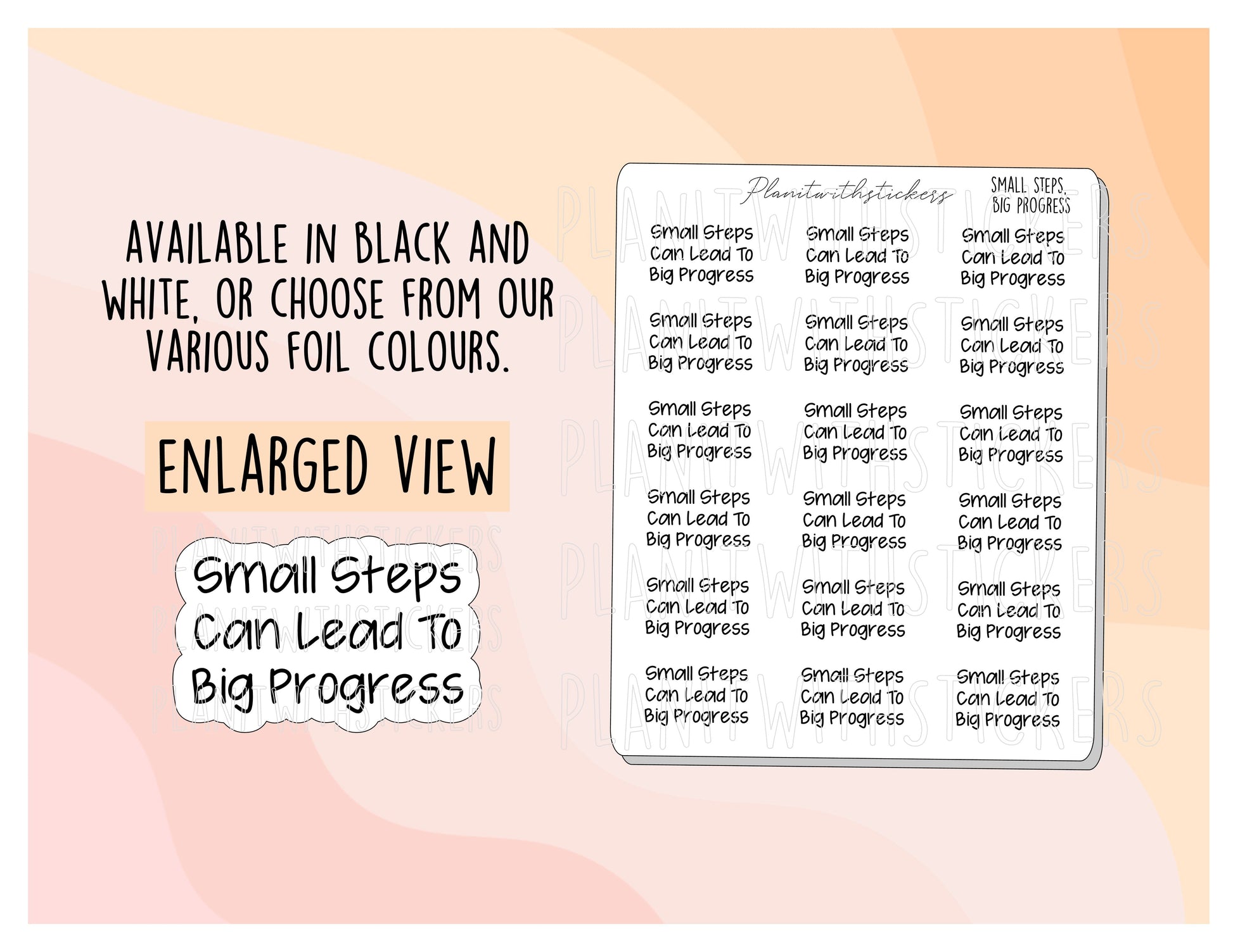 Includes one 4x3 sheet of 18 "Small Steps Lead To Big Progress" stickers.