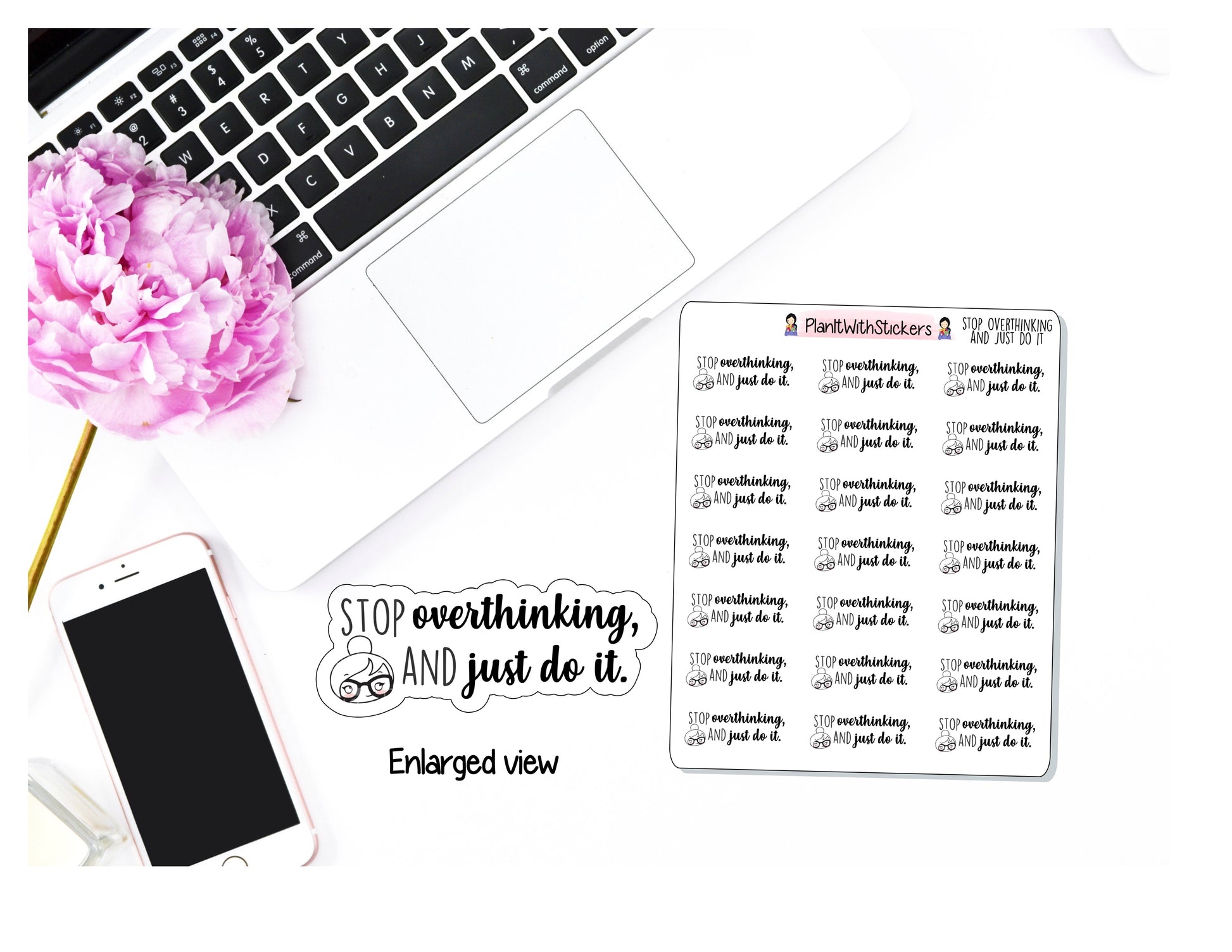 This listing is for one 4x3 sheet of 18 "Stop Overthinking, and Just Do It" character stickers that are perfect to be used as self care, anxiety tracker, or mental health awareness stickers.