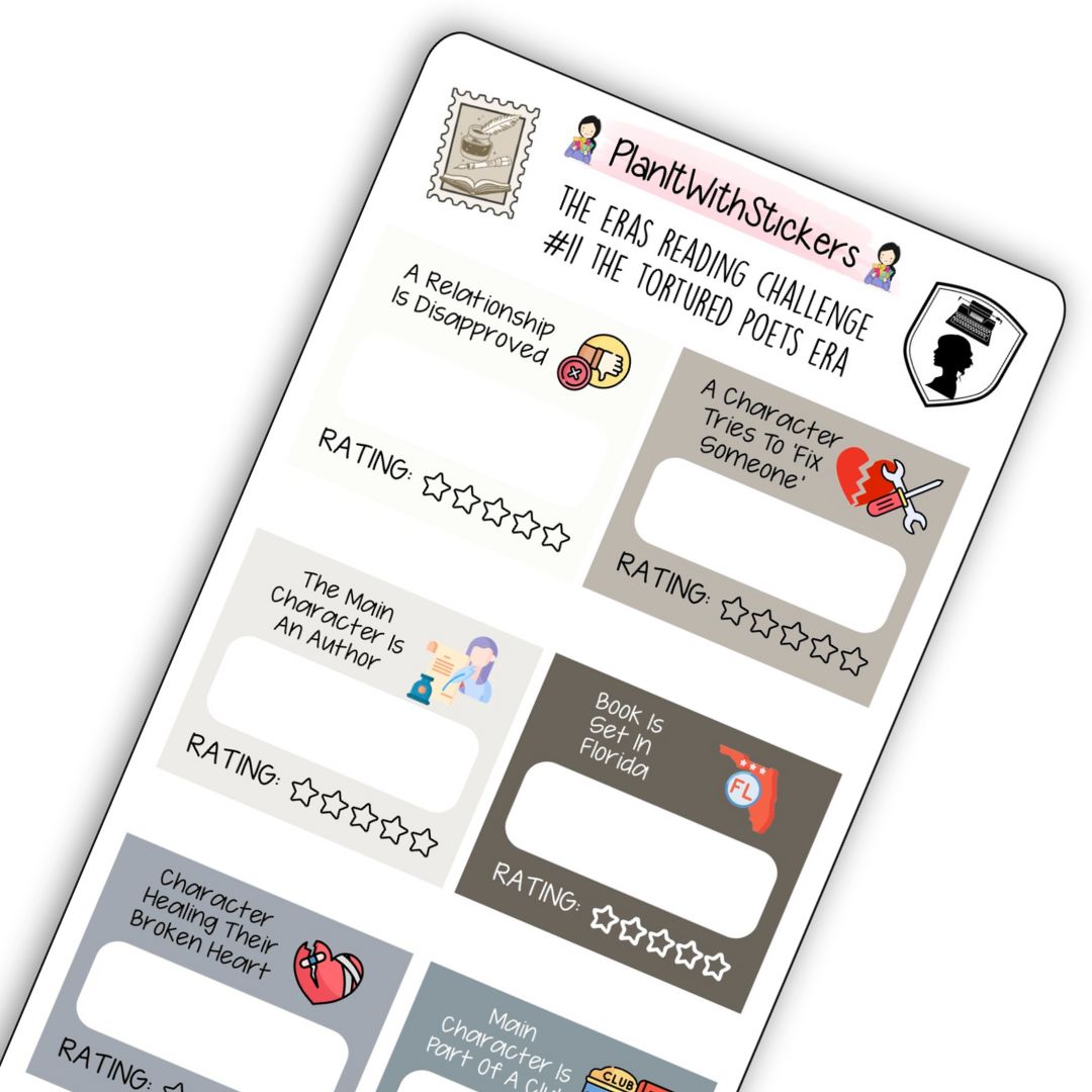 The Tortured Poets Era (#11) The Eras Reading Challenge Book Prompt Stickers