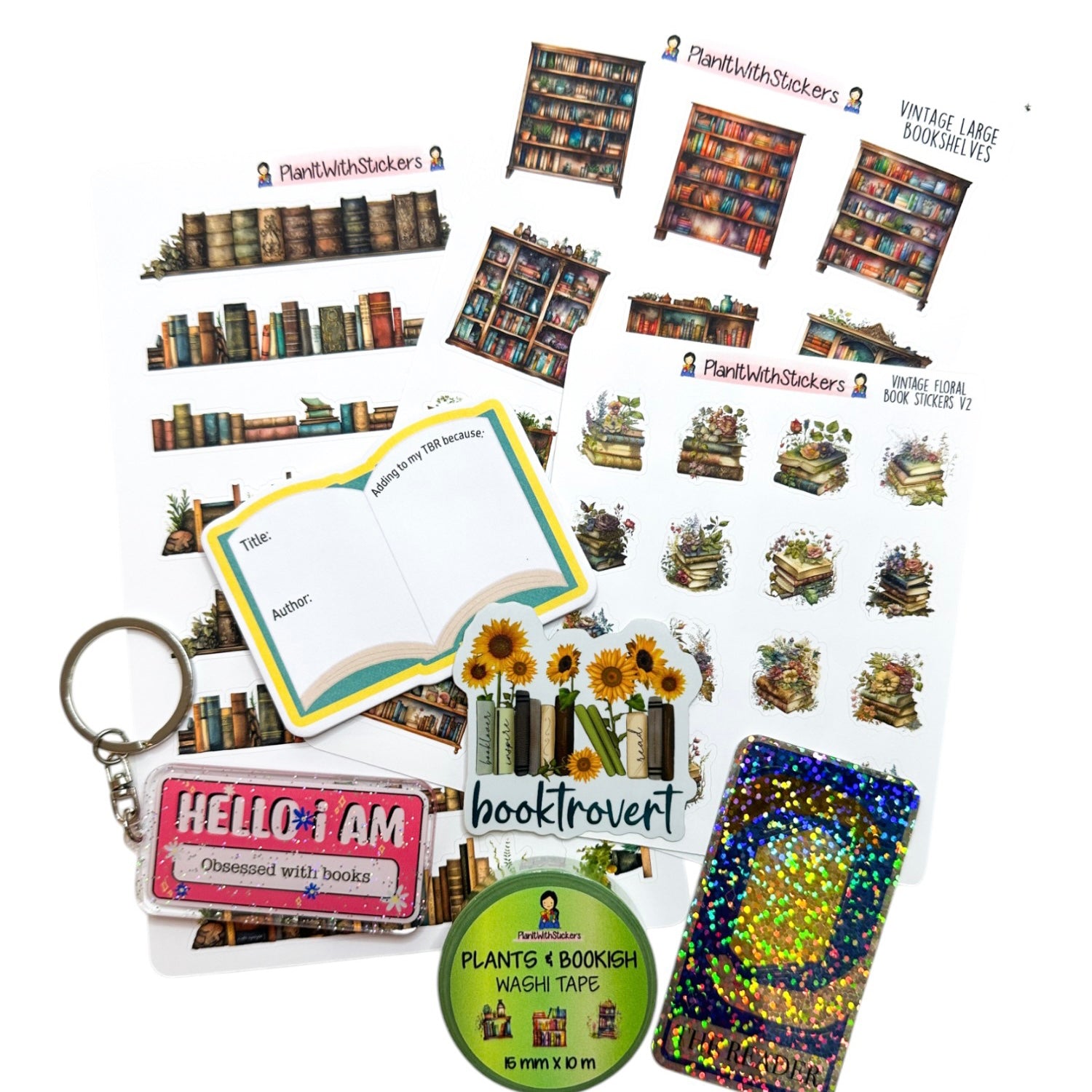 This listing is for ONE Vintage Bookish Sticker + Merch Bundle.