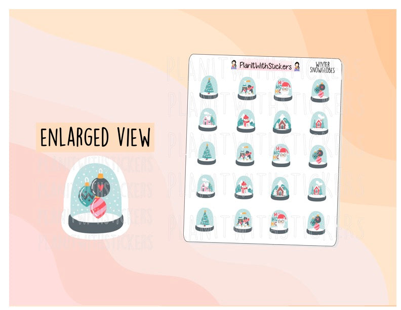 This listing is for one 4x3 sheet of 20 Winter Snowglobe Stickers